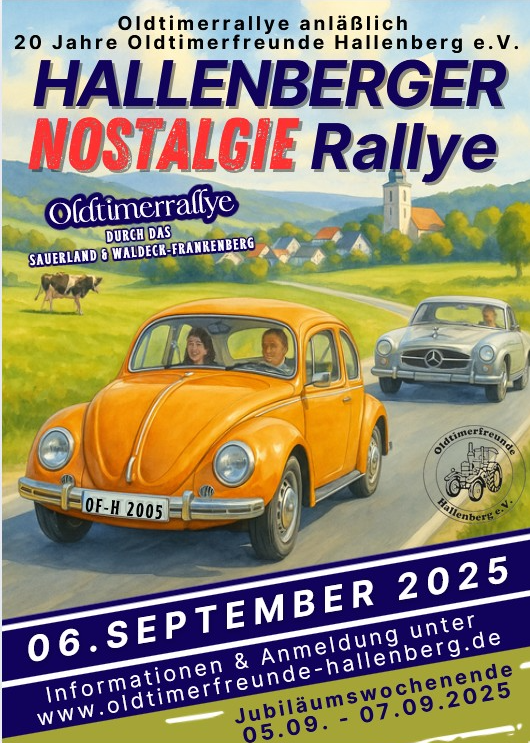 Die Oldtimerfreunde Hallenberg e.V. veranstalten am 6. September 2025 die Hallenberger Nostalgie Rallye im Rahmen ihres 20-jährigen Jubiläums.
