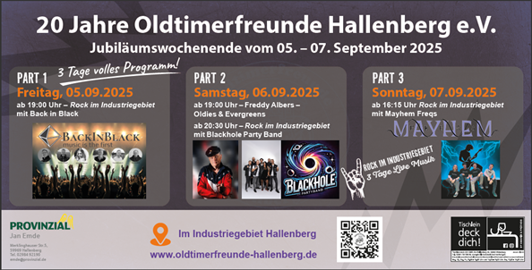 5. bis 7. September 2025 im Industriegebiet "Lehmbach" in Hallenberg!