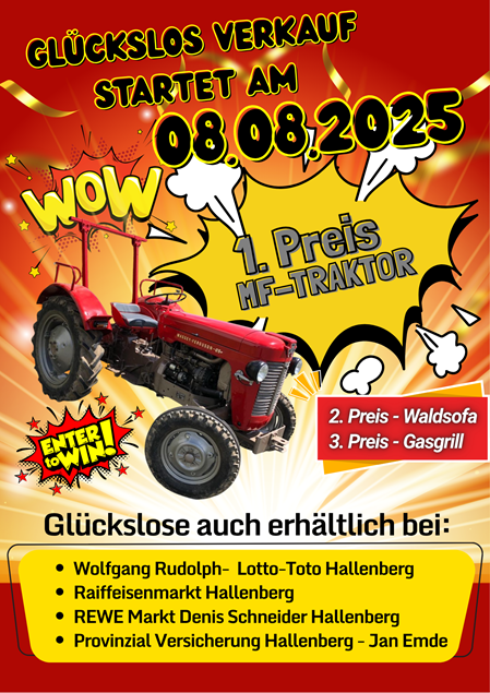 📍 Die Verlosung findet um ca. 16:00 Uhr am Festgelände„Industriegebiet – Lehmbach“ in Hallenberg statt.