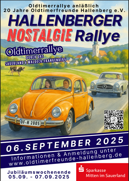 Mach dich bereit für ein ganz besonderes Highlight, anlässlich des 20-jährigen Jubiläums der Oldtimerfreunde Hallenberg e.V., startet die Hallenberger Nostalgie Rallye – und du kannst dabei sein!